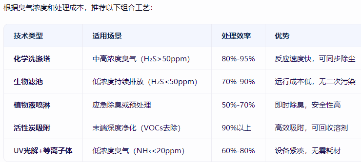 根據臭氣濃度和處理成本,推薦以下組合工藝: