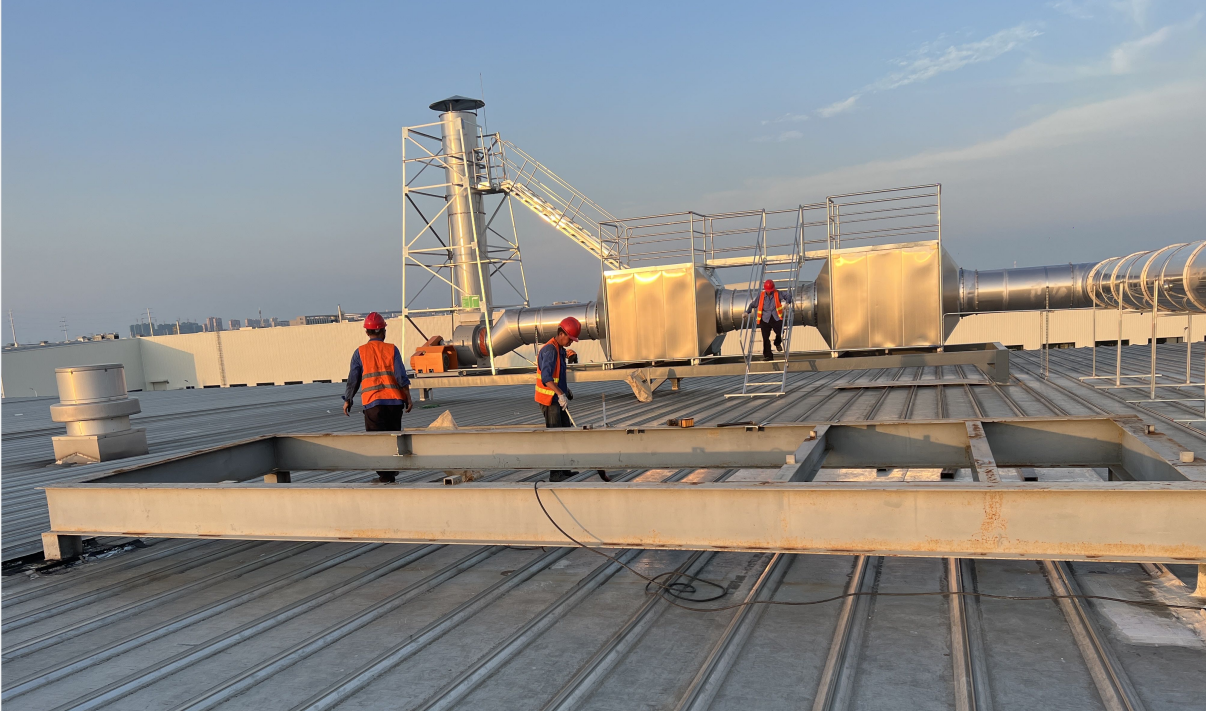廢氣凈化后,應(yīng)經(jīng)過(guò)增壓風(fēng)機(jī)將廢氣排放到環(huán)境空氣中,確保排放符合相關(guān)標(biāo)準(zhǔn)和要求。