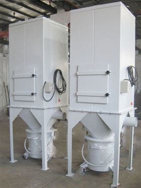 鑫藍科技處理華東汽車行業含塵廢氣含塵空氣由下部進入,經擋板作初級分離后粗粒涇粉塵落入下方漏斗。細微粉塵被導引到過濾室內,并附著于濾袋表面,過濾后之清凈空氣通過濾袋由部排出。濾袋表面附著之粉塵以噴氣逆洗方清洗濾袋,震落后收集于下部收集桶后排出。清洗濾袋裝置設置于濾袋上部,動作時以壓縮空氣瞬間噴入并導入57倍的二次壓縮空氣,使濾袋產生擴張的振動效果,利用此擴張效果及空氣逆洗動作達到清洗濾袋之效果,清洗動作時因每組濾袋清洗時間約0.1秒,對過濾面積影響幾乎沒有,且同一組濾袋清洗循環間隔約三分鐘,濾袋整壓降保持一定,處理風量,壓力變動小,設備整體能保持安定狀態運轉。