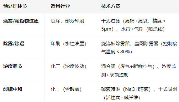 預處理目的是去除干擾物質、調節廢氣參數,避免TO內堵塞、腐蝕或燃燒異常:
