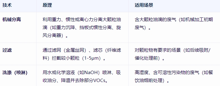 適用場景:高濃度(>5000mg/m³)、高沸點(>80℃)的油分(如重油廢氣)。