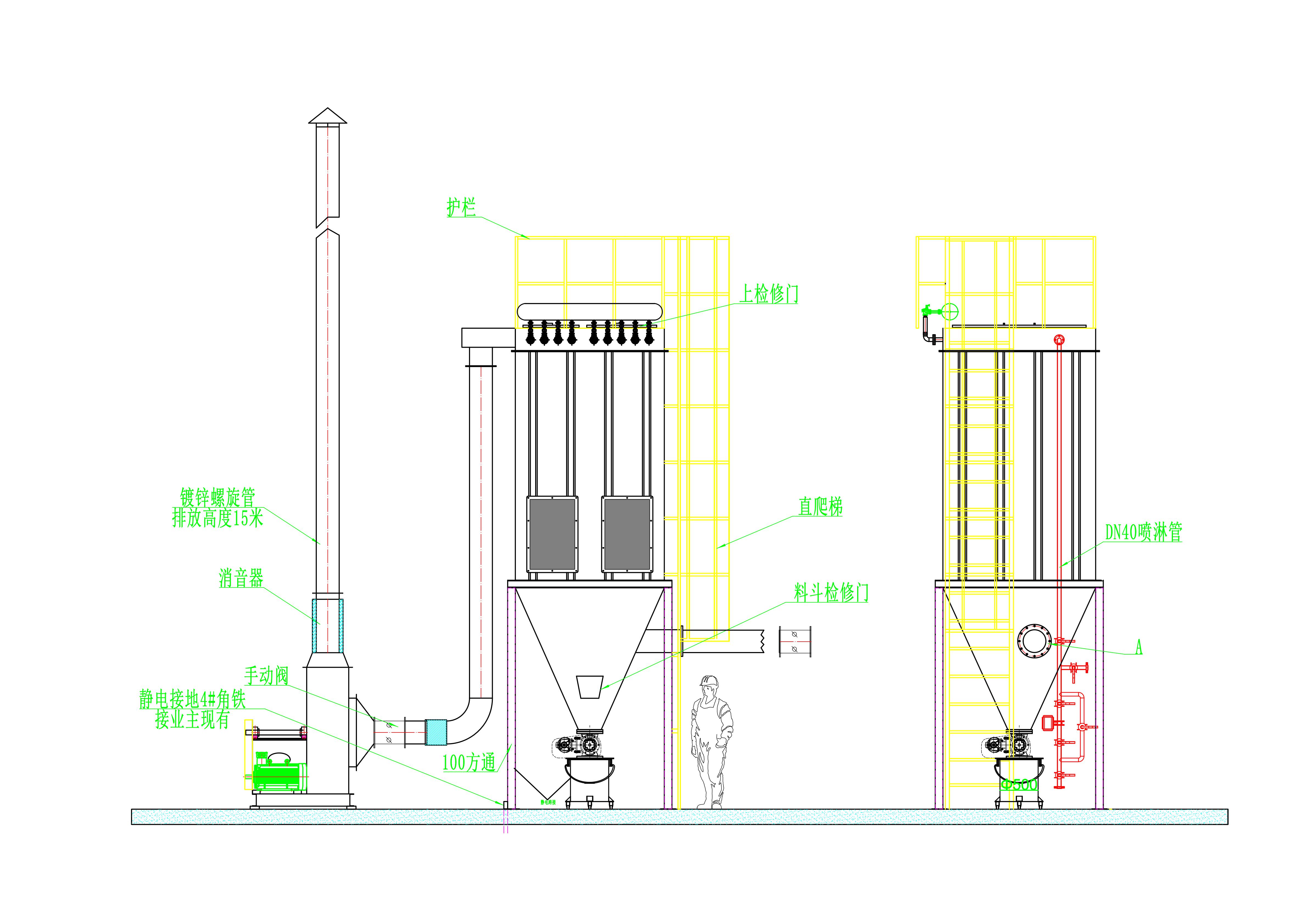 1、用集氣罩捕集工藝過程中產生的含塵氣體。