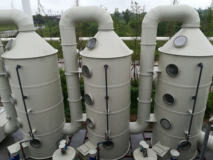 廢氣進(jìn)入吸收塔,與循環(huán)噴淋的堿性溶液逆流接觸。