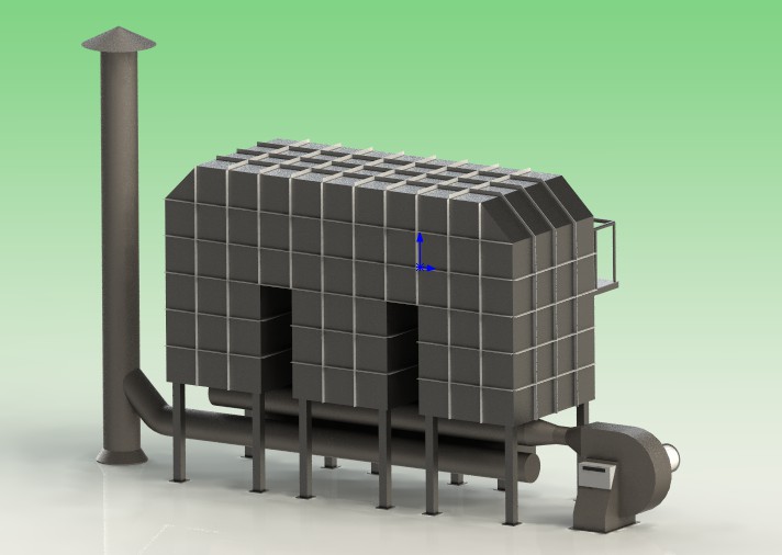 氣體進(jìn)入燃燒室時(shí),氣體經(jīng)過(guò)吸收蓄熱床中的能量,溫度基本上已經(jīng)達(dá)到預(yù)先設(shè)定的界限。如果氣體還達(dá)不到需要的溫度,可以通過(guò)燃燒器向燃燒室加入補(bǔ)充燃料來(lái)提高氣體的溫度。如果該氣體含有足夠的產(chǎn)生熱量的VOCs,則不需要額外的燃料。
