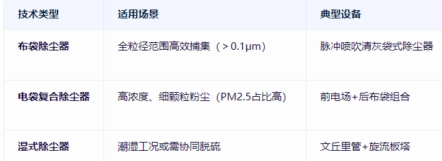 除塵:布袋除塵、濕式電除塵(針對石墨、金屬粉塵)