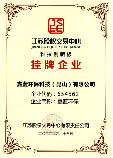 近日,鑫藍環保(鑫藍環保科技(昆山)有限公司簡稱)負責人王總參加了企業科技版掛牌儀式。王總指出,企業的競爭力和財富就是企業的科研實力和自身所擁有的知識產權,屬于無形資產。鑫藍環保始終保持產品研發,不斷創新,不斷進步。