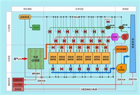 系統配置有一定量的備用吸附設備,用于吸附設備吸附飽和后脫附再生時替換使用,備用設備配置與主吸附設備相同。控制系統會根據總的吸附設備數量及預計吸附飽和時長,按算法自動切換吸附設備接入主吸附凈化管路,使廢氣凈化系統中所有吸附設備的運行時長基本均處于一個脫附期內,但每臺吸附設備運行時長相差4小時(單個吸附箱的脫附時長)以上。以保證所有吸附箱在同一個脫附周期內全部脫附再生,CO爐不需要頻繁啟動運行,降低系統能耗。