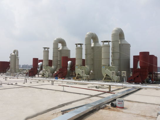 噴淋洗滌塔采用氫氧化鈉(NaOH)溶液(或硫酸溶液)作為吸收液來凈化酸性(或堿性)氣體,酸性(或堿性氣體)氣體由離心通風機吸入進風段后向上方流動、而噴嘴噴出的中和液由上向下噴淋。從級中噴出的中和液與上升的酸性(或堿性氣體)氣體進行氣液接觸,吸收中和液往下濕淋級填料層,使從下往升的酸性(或堿性氣體)氣體得到氣液接觸吸收中和.中和液再向下淋級填料層。再一次獲得氣液相接觸吸收中和作用;同時還增大了級中填料的濕淋量、從而加大了該填料層的氣液比;正因為酸性(或堿性氣體)氣體是自下往上升。因此通過級填料層的酸性(或堿性氣體)氣體濃度高.這樣使高濃度的酸性(或堿性)氣體曲折地從填料間空隙通過向上升時,與向下流動的中和液接觸吸收中和、可使酸性(或堿性)氣體通過該填料層后濃度急劇下降,然后再經過一排中和液噴淋,酸性(或堿性)氣體與吸收液中和后,濃度再度下降;然后再通過一個填料層和一排中和液噴淋的接觸吸收中和、使酸性(或堿性)氣體的濃度凈化到設計的預定效果。后通過防霧層經帽蓋而排入大氣。