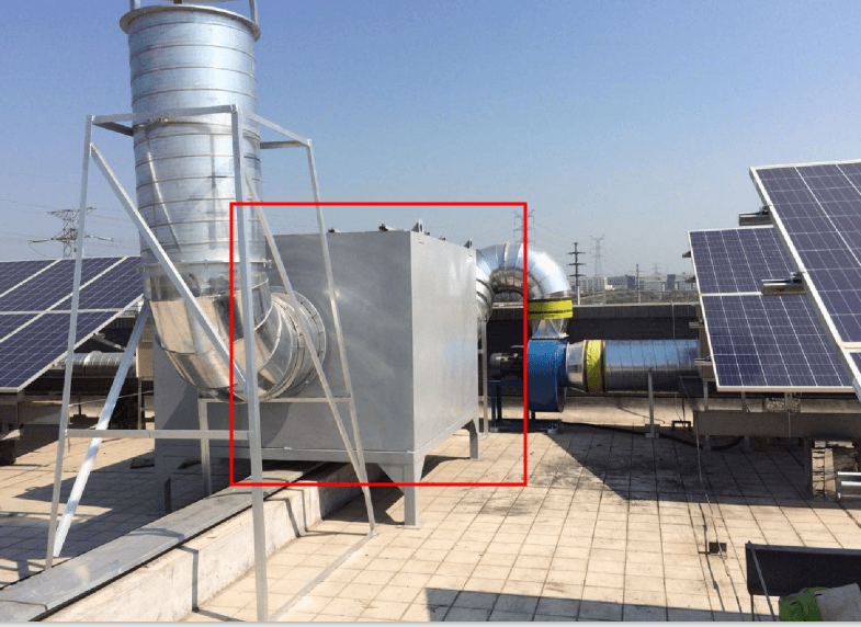 B.活性炭塔工作原理,車間含有有機氣體或顆料斗物經獲罩收集,管道輸送有機氣體進入活性炭塔,有機氣體進入塔內時,風速順間降下,氣體內含的較大顆料斗雜物便自然沉降入塔底部,面溶入氣體內的有機氣體部分隨氣體流進活性炭過濾層,有機氣進入炭層時,有機氣體被活性炭吸附進炭內,而干凈的空氣穿過炭層進入出氣倉,氣體經過機械自吸后排入大氣中。